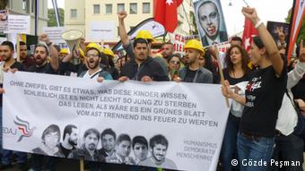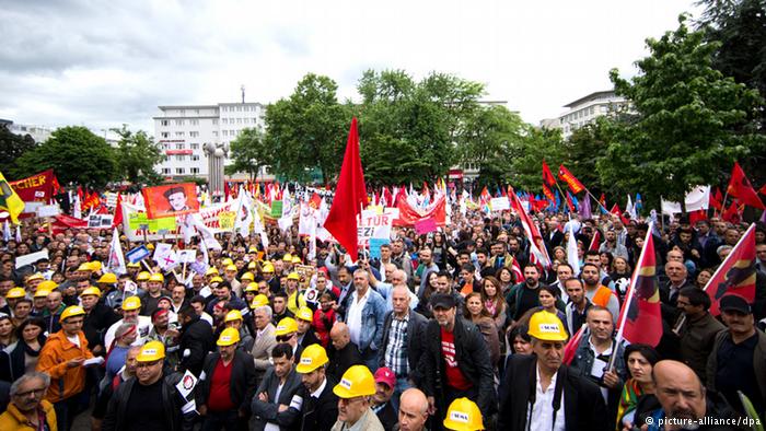 Migliaia di Alevi, Kemalisten e altri Erdogan Critica contro la sua presenza a Colonia protesta. Essi criticano la Gestione del bagno turco di primo ministro per le Minoranze, ma anche con il Minenunglück a Soma.