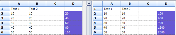 As you can see, entered values are green, formulas are purple, calculated  values are bluish, etc., etc. These are my example spreadsheets where one takes 5 pairs of numbers and adds them and the other just multiples them.