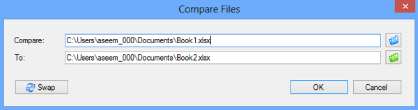 Click on Compare Files at the top left and then choose the two Excel files you want to compare.