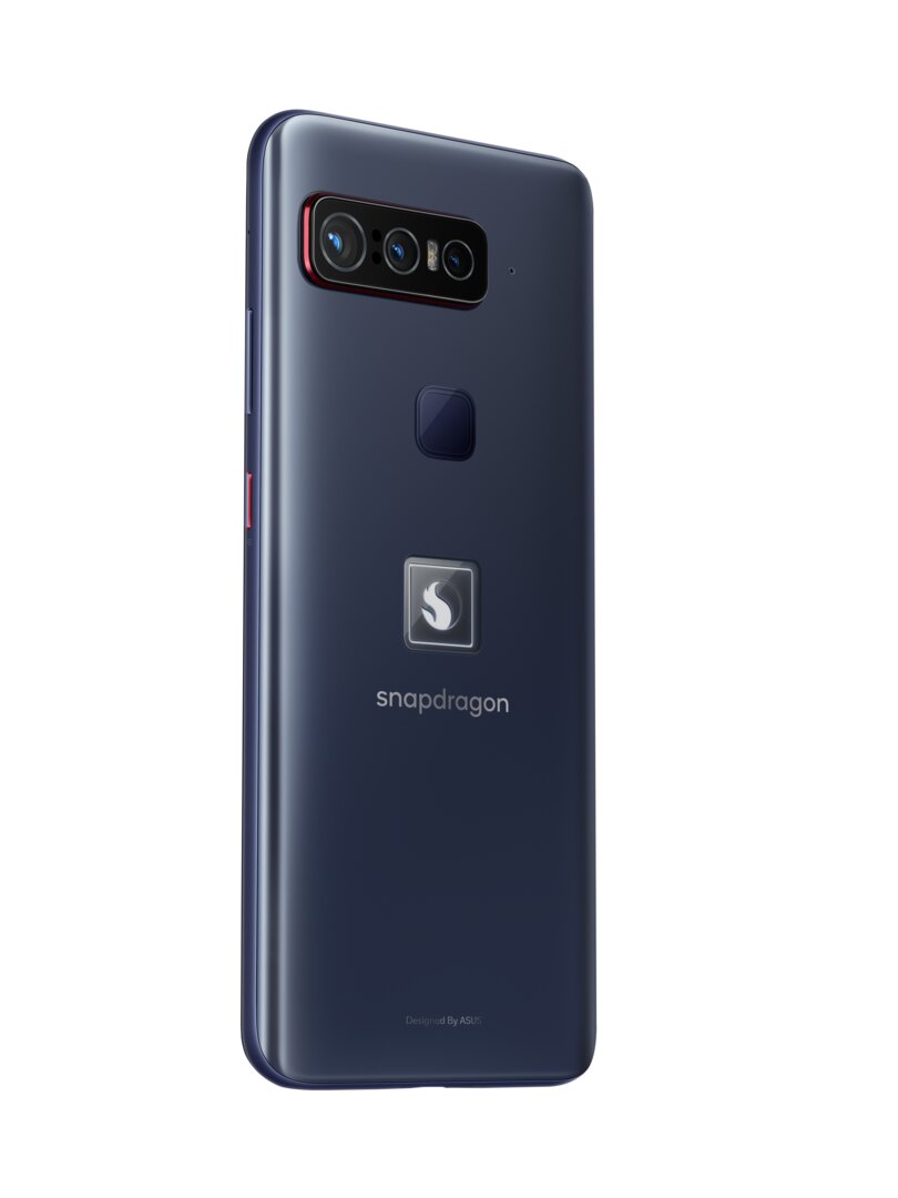 Designed by Asus, the “Smartphone for Snapdragon Insiders” brings back memories of the soberly designed QRDs from Qualcomm, the “Qualcomm Reference Designs”, on which the chip developer shows new processors and the press has the first benchmarks carried out. The only branding is on the back in the form of a Snapdragon logo illuminated with white LED including lettering underneath. Between the logo and the triple camera there is also the fingerprint sensor on the back, which is the 2nd generation 3D sonic sensor, which is celebrating its premiere here for the first time not integrated into the display.