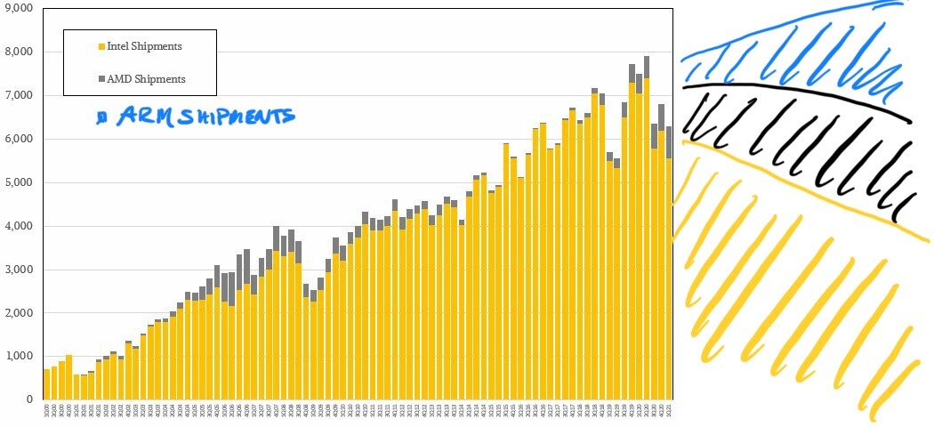 Whether and how ARM's market share will develop is still in the stars. ARM trials in server systems have been around for a decade and are currently estimated to have a market share of around 3 percent. In special areas, this should definitely be worthwhile in the future as well. Whether it will end up being as optimistic as Timothy Prickett Morgan from TheNextPlatform, which specializes in server issues, predicted with a twinkle in his eye remains questionable. Because you were at a very similar point seven years ago, for example, only to crush expectations to a tenth. At that time it was already said that we wanted to achieve a 20 percent market share – by 2020. As is well known, that didn't work out.