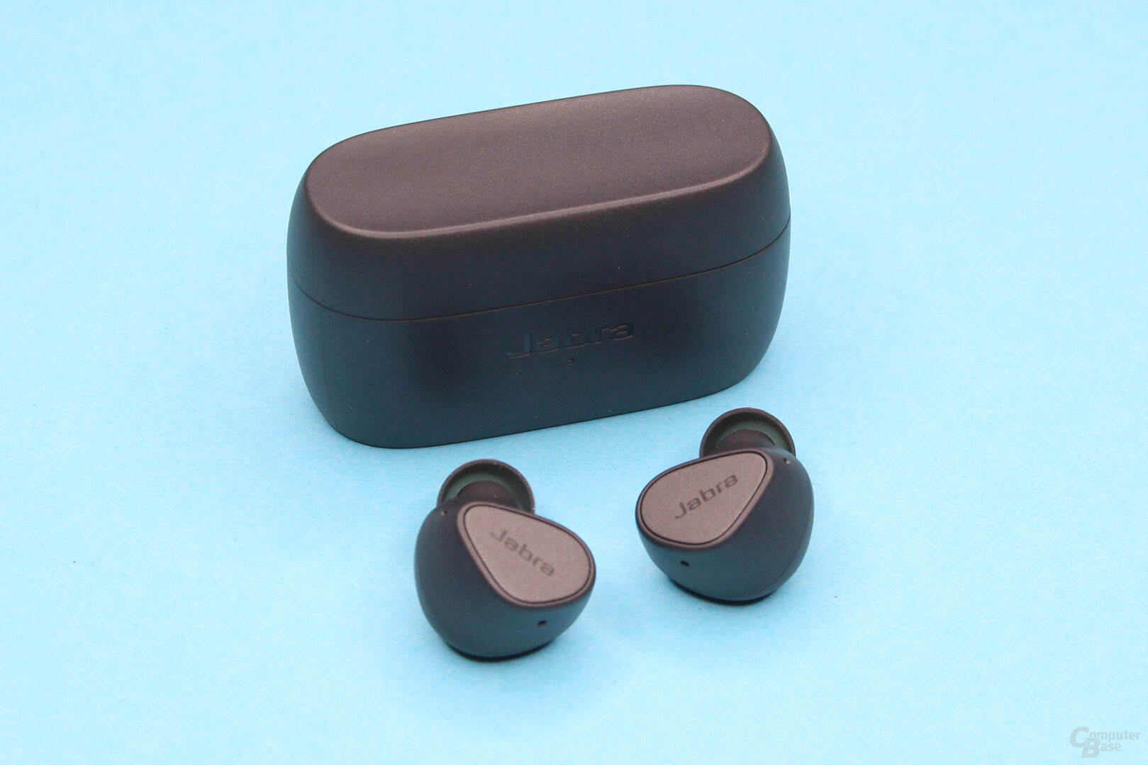 The earphones, which are smaller than the Jabra Elite 85t (test), weigh 5 g each. The charging case weighs only 33 g with dimensions of 34.6 × 63.9 × 28.2 mm and is therefore lighter and smaller than the Elite 85t and is roughly on par with the Elite 75t. In view of the lower price, the charging case has to do without wireless charging. For this it offers a quick charge function via USB-C.