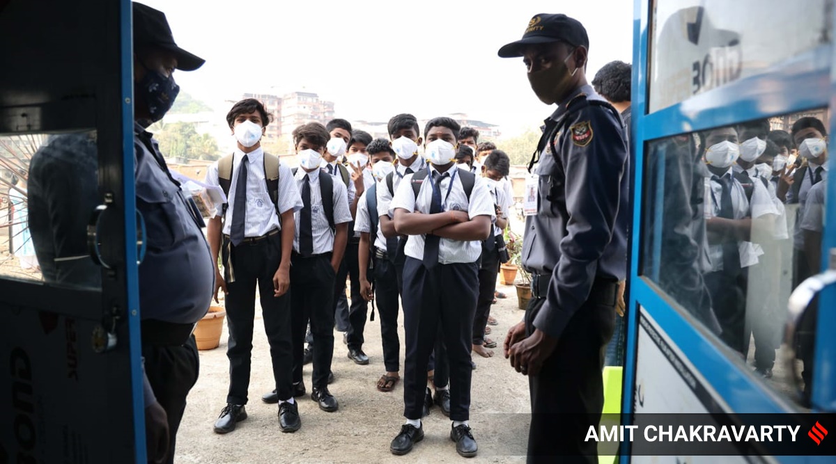 Barn venter på covid-vaksinasjon på et jumbosenter på Somaiya Ground i Mumbai's Sion på tirsdag. (Ekspressfoto av Amit Chakravarty)