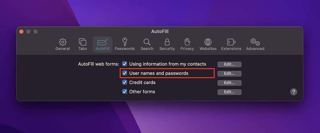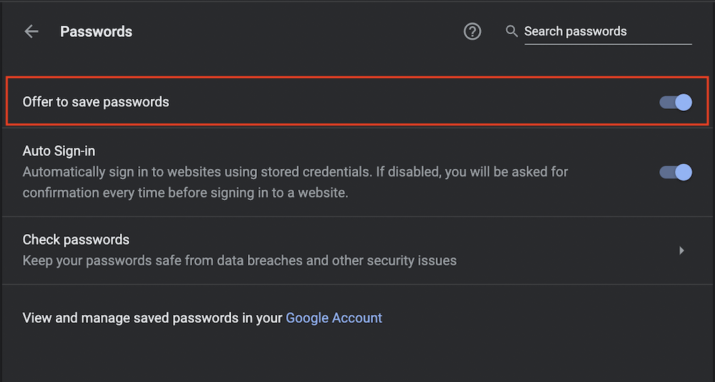 Hvis nettleseren din ikke klarer å lagre passord for hvert nettsted du logger på, må du kanskje aktivere alternativet som husker påloggingsinformasjonen din. Du kan gjøre det ved å gå gjennom passordinnstillingene eller autofyllinnstillingene.