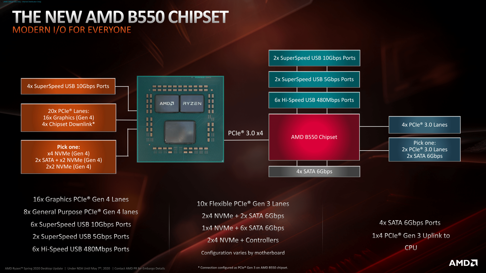 */**) Der AMD B550 erhält seine 20 PCIe-4.0-Lanes über den Prozessor