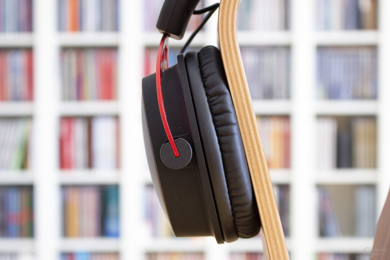 When looking at the Cloud Alpha Wireless, one or the other expert user might ask the question “Have I seen it somewhere?”. And he shouldn't have been wrong. The new headset from HyperX inherits its external design from the Cloud II Wireless (test), but also uses parts of the Cloud Mix (test). The wireless Alpha version of the Cloud II Wireless, which was released a little over a year ago, mainly takes over the color scheme consisting of a predominantly black with red accents on the attachments of the ear cups and on the seams on the cover of the headband. From the now three-year-old Cloud Mix, on the other hand, it gets the more angular ear cups with a rubberized surface, which were even more round and made of smooth plastic on the Cloud II Wireless. A small drop of bitterness here too: the design means that the cables cannot be hidden and are therefore exposed, so care should be taken to avoid any damage during transport.