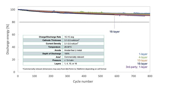 NEW STEPS FORWARD a 16-layer solid-state cell which seems to have already given; excellent results. According to what & egrave; been told, this new cell & egrave; was able to withstand over 500 cycles charge/discharge without showing any significant loss of capacity. The new cell obtained, substantially, the same results as those more & ugrave; small ones tested so far (1, 4 and 10 layers).