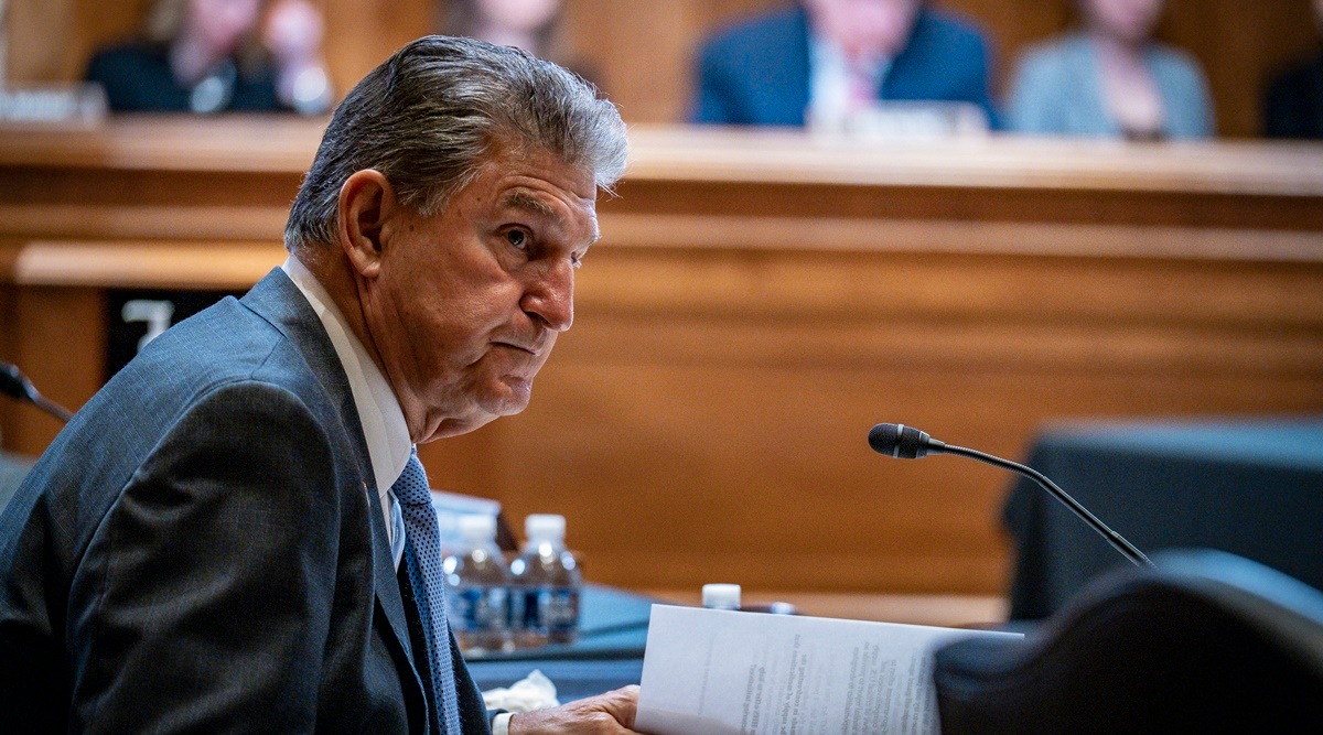 Sen. Joe Manchin (D-W.Va.) under en utfrågning i senatsutskottet på Capitol Hill i Washington den 4 maj 2022. Manchin förkastade Biden-administrationens skatteagenda i kongressen genom att säga att han inte omedelbart kunde stödja ett klimat-, energi- och skattepaket han hade tidigare indikerat att han kunde stödja. (Bild/The New York Times)
