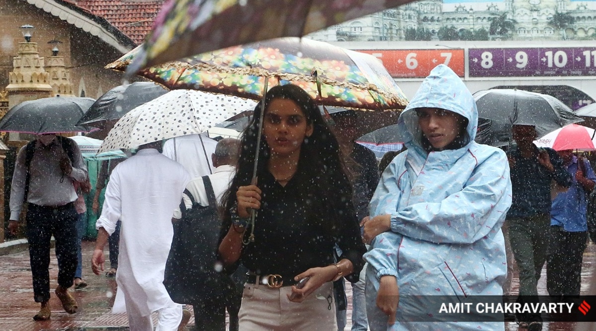 Des habitants de Mumbai marchent sous la pluie dans la ville. (Photo express d'Amit Chakravarty)