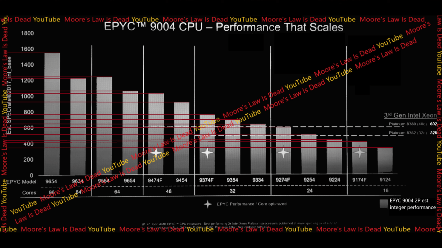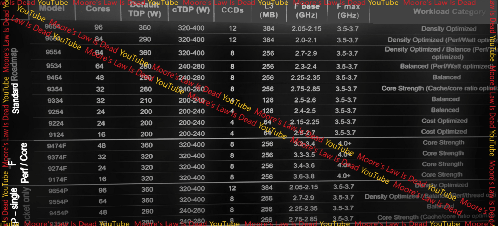 The YouTube channel Moore's Law Is Dead, known for its pre-publications, has published the first benchmarks and specifications for the server and cloud CPUs Genoa, Genoa-X and Bergamo, which the new generation attest a significantly higher efficiency than Milan, Milan-X and Intel Xeon.