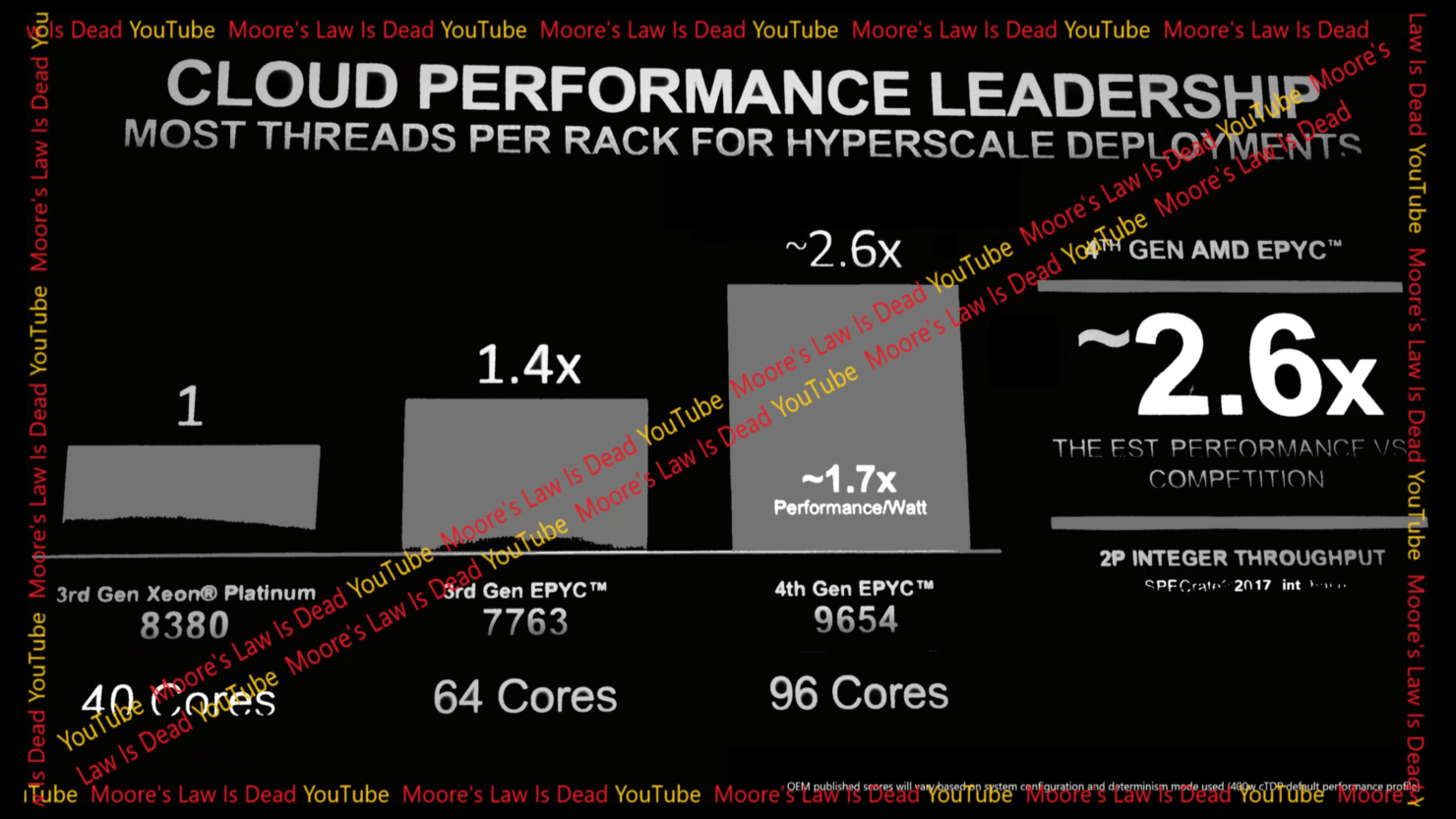 AMD Genoa in direct comparison with AMD Milan and Intel Xeon (Image: Moore's Law Is Dead)