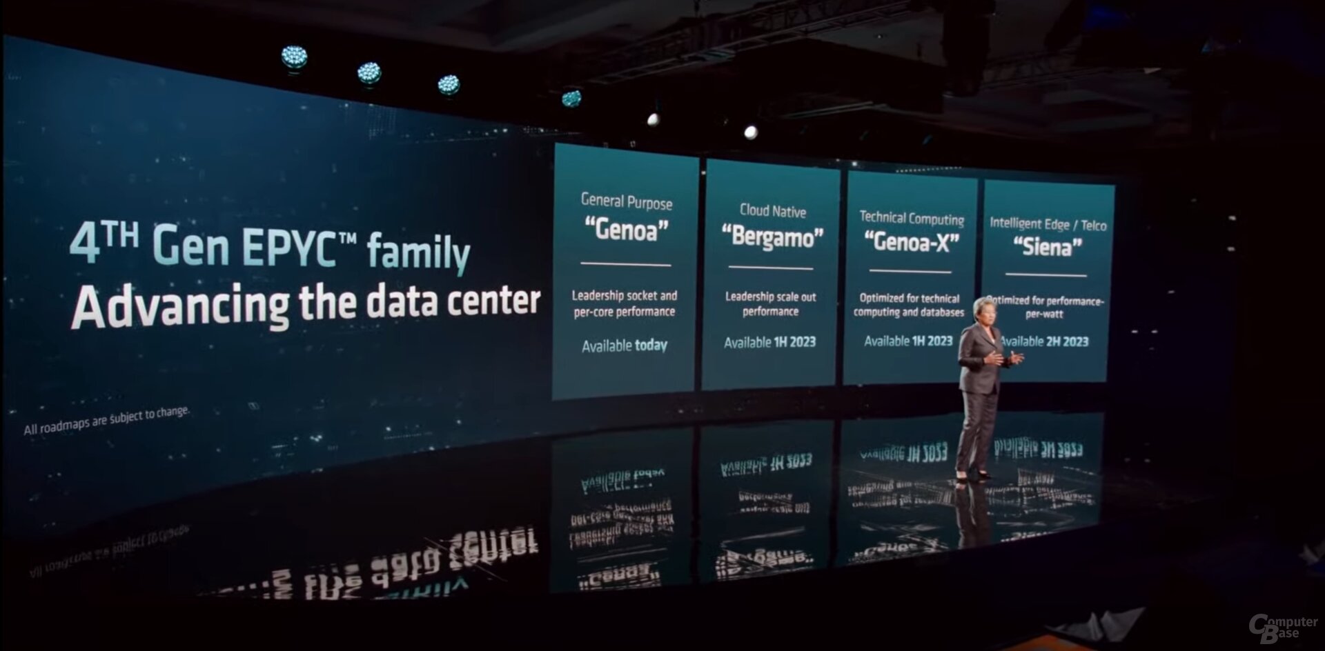 AMD has specified the schedules for the already known offshoots Bergamo, Genoa-X and Siena. Bergamo for cloud servers with a high thread density will appear in the first half of the year and, according to the latest information, will offer up to 128 Zen 4c cores with less cache. Also in the first half of 2023, Genoa-X with stacked 3D V-Cache should follow. Siena as a low-cost offshoot intended for telecommunications and Edge will only come in the second half of the year.