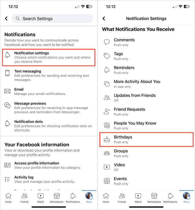 Facebook-födelsedagsaviseringar på mobilen