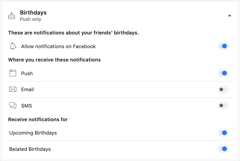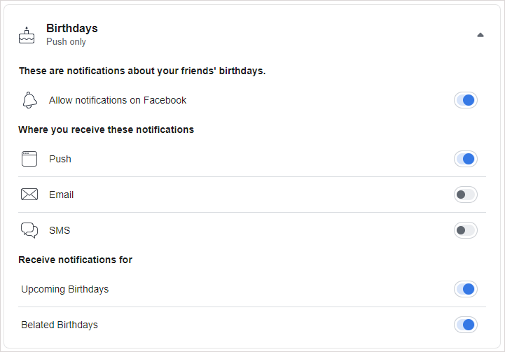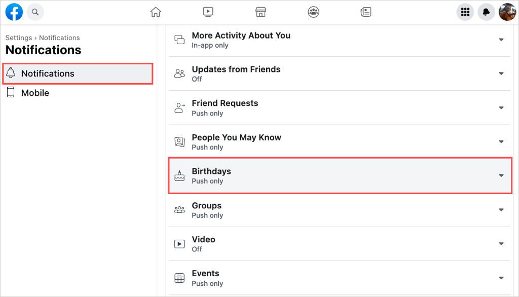 Hur man aktiverar och inaktiverar födelsedagsaviseringar på Facebook