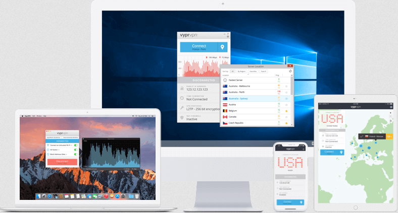 Bedriften administrerer alle servere VyprVPN bruker. Det betyr at du ikke vil stole på tredjeparts webverter for sikker og kontinuerlig tilkobling. Den bruker WireGuard-kommunikasjonsprotokollen for optimalisert ytelse, P2P-støtte og 24/7 kundestøttechat. Som et resultat kjører tjenesten deres problemfritt selv om du bruker den på forskjellige enheter i husholdningen din. Den kan støtte opptil 30 enheter, fra smarttelefoner, datamaskiner og rutere, til spillkonsoller, nettbrett og MacBook.