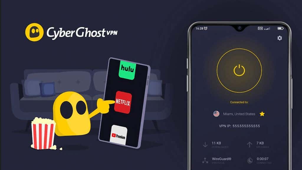 Og til slutt kan denne VPN-en romme opptil syv samtidige tilkoblinger med én konto. Så hvis du leter etter pålitelig streaming med forbedrede sikkerhetsfunksjoner for hele husstanden din, er CyberGhost VPN et av de beste alternativene dine.