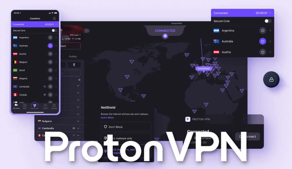 ProtonVPN gir deg tilgang til risikofrie servere i land med god personvernlovgivning. Andre sikkerhetsfunksjoner inkluderer et ekstra krypteringslag med en MultiHop VPN-funksjon, en effektiv Kill Switch-funksjon og annonseblokkeren Netshield, som blokkerer skadelig programvare og trackere.