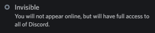 2. Usynlig: Den usynlige statusen ser ut akkurat som frakoblet symbol. Du er imidlertid fortsatt logget på Discord-kontoen din og kan se og samhandle med applikasjonen. Denne statusen brukes når du ikke vil at andre skal vite at du er online.