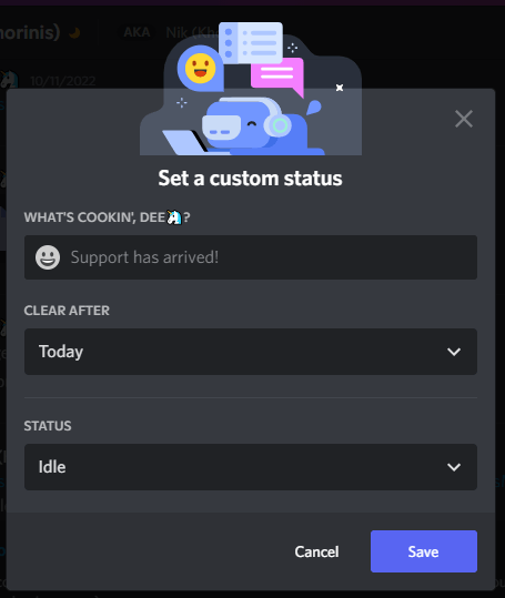 8. Tilpasset statusmelding. Discord lar deg angi en egendefinert statusmelding for statustypene Online, Inaktiv, Invisible og Ikke forstyrr. Du kan for eksempel forklare hvorfor du valgte en bestemt status eller nevne favorittvitsen din. Det er ingen regler, og du kan være kreativ.