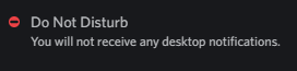 1. Ikke forstyrr (DnD for kort): Denne statusen vil fortelle vennene dine og servermedlemmer at selv om du er online, er du ikke tilgjengelig for chat. Symbolet for denne statusen er en rød sirkel i hjørnet av avataren eller profilikonet ditt. DnD-status vil også slå av alle Discord-relaterte varsler, slik at du ikke vet om noen sender deg meldinger. Ikke forstyrr-statusen må stilles inn manuelt.