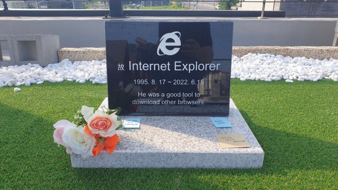 Per qualcuno è stato un evento da celebrare in pompa (funebre) magna: Jung Ki-young, un ingegnere software sudcoreano, ha deciso di commemorare il defunto browser progettando e facendo realizzare una lapide con il logo di Internet Explorer – l'inconfondibile "e" – e un ironico epitaffio: Era un buono strumento per scaricare altri browser. La foto di questo particolare memoriale (costo circa 300 dollari) è stata esposta nel bar del fratello di Ki-young ed è diventata presto virale.