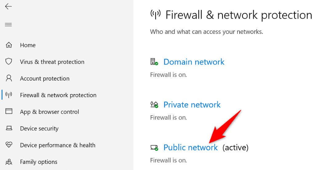 Du kan slå av datamaskinens brannmur for å sjekke om det er tilfelle. Slik deaktiverer du Microsoft Defender-brannmur på Windows:
