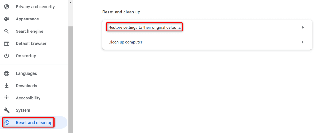 Hvis du fortsatt ikke kommer forbi feilmeldingen, tilbakestill Chrome-nettleseren til fabrikkinnstillingene og se om det løser problemet. Tilbakestillingsprosessen sletter alle tilpassede innstillingsalternativer, og fikser feil spesifiserte konfigurasjoner.