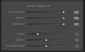 - Kontrast kontrollerer hvor mye kontrast som er igjen i bildet (da noe kan gå tapt under støyreduksjon).