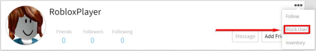 - Välj de tre prickarna i det övre högra hörnet av rutan som innehåller deras användarnamn och välj Blockera användare.