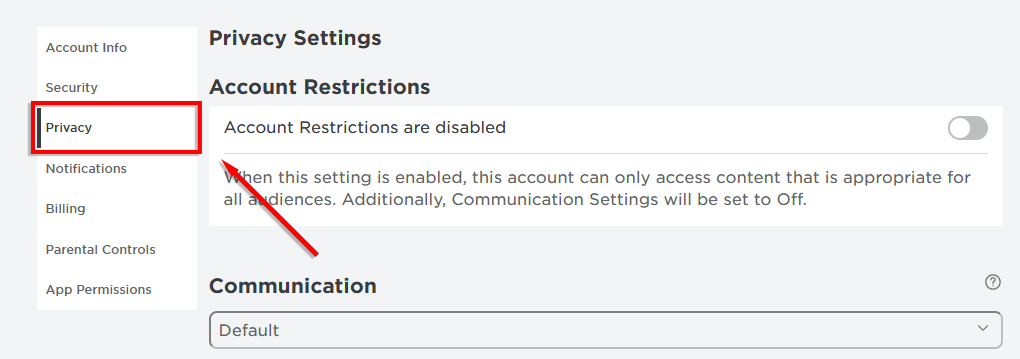 Når du har fullført aldersbekreftelsesprosessen, kan du aktivere talechat i Roblox personverninnstillinger: