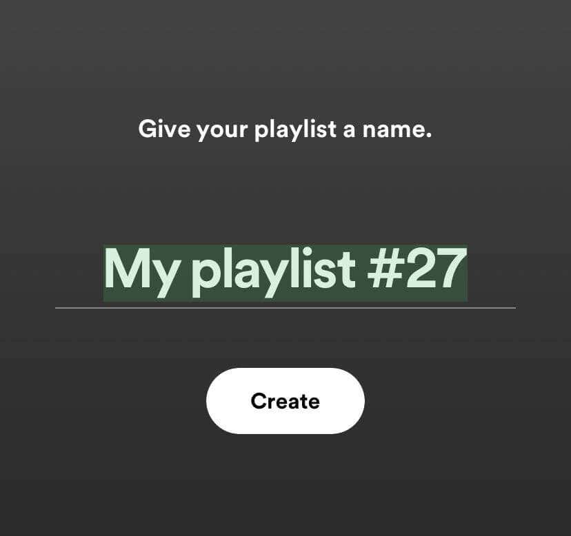- < li>Ti verrà chiesto di dare un nome alla tua nuova playlist. Dopo aver assegnato un nome, tocca Crea.
