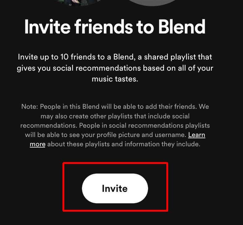 Puoi aggiungere più persone al Blend toccando l'icona Aggiungi persona nella parte superiore della playlist, quindi selezionando Invita altri per inviare un altro collegamento.