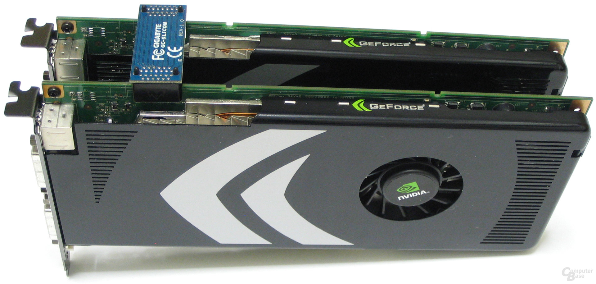 The weaknesses of the multi-GPU systems were revealed in the B grades. At 52.5 dB(A), the volume of the two GeForce 8800 GTs under load was once again significantly higher than the already loud GeForce 8800 Ultra, and the chip temperature of the multi-GPU systems was close to the 100 °C limit. In terms of power consumption, the two GeForce 8800 GTs also trumped the top model.