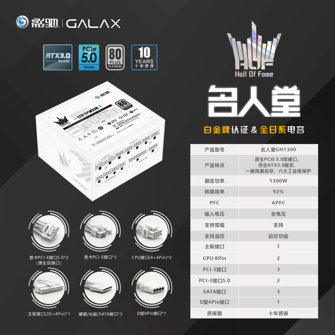 Galax, best known for its enthusiast graphics cards, has unveiled a new high-end category power supply through its official account on Chinese e-commerce platform Taobao. The Galax HOF GH1300 offers a rated power of 1,300 watts for OC systems with GeForce RTX 4090 (test).