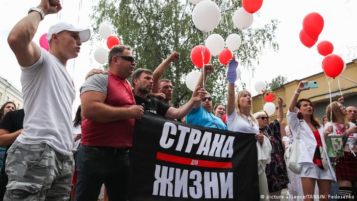 “Ein Land zum Leben” – Anhänger von Sergej Tichanowski demonstrieren für seine Freilassung в августе 2020 г.