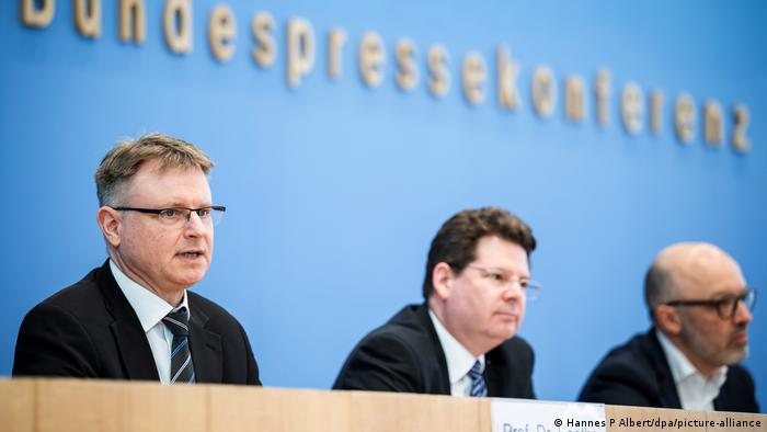 Stefan Kooths from the Kiel Institute for World economy (left), Oliver Holtemöller from the Leibniz Institute for Economic Research Halle (IWH) and Timo Wollmershäuser from the Leibniz Institute for Economic Research at the University of Munich