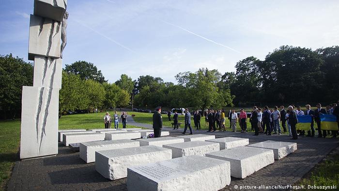 < р>Das Wolhynien-Mahnmal в Варшаве. Am 8.07.2016 legte der damalige ukrainische Президент Петр Порощенко Blumen für die Opfer nieder