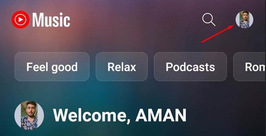 Återigen, så här ser det ut: Öppna bara YouTube Music-appen och tryck på din profilikon i det övre högra hörnet.