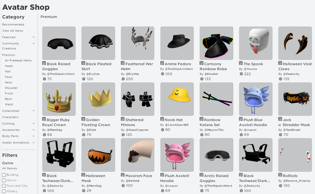 Många utvecklare väljer att inkludera endast Premium-objekt, nivåer, spelpass eller förmågor för att öka sina intäkter. Och även om de flesta spel är gratis att spela på Roblox, kan utvecklare välja att ta ut en avgift (25 till 1 000 Robux) för användarna att spela.